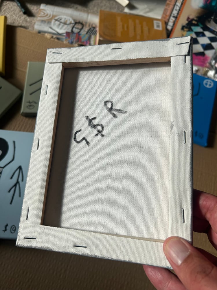 Acrylic and emulsion paint on 15x20cm canvas, signed